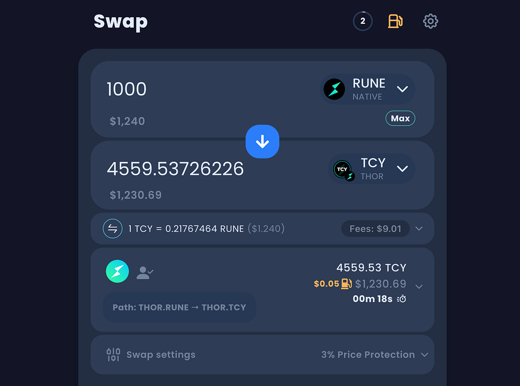 5️⃣ Buy/Sell $TCY on the swap page: https://app.thorswap.finance/swap/THOR.RUNE_THOR.TCY